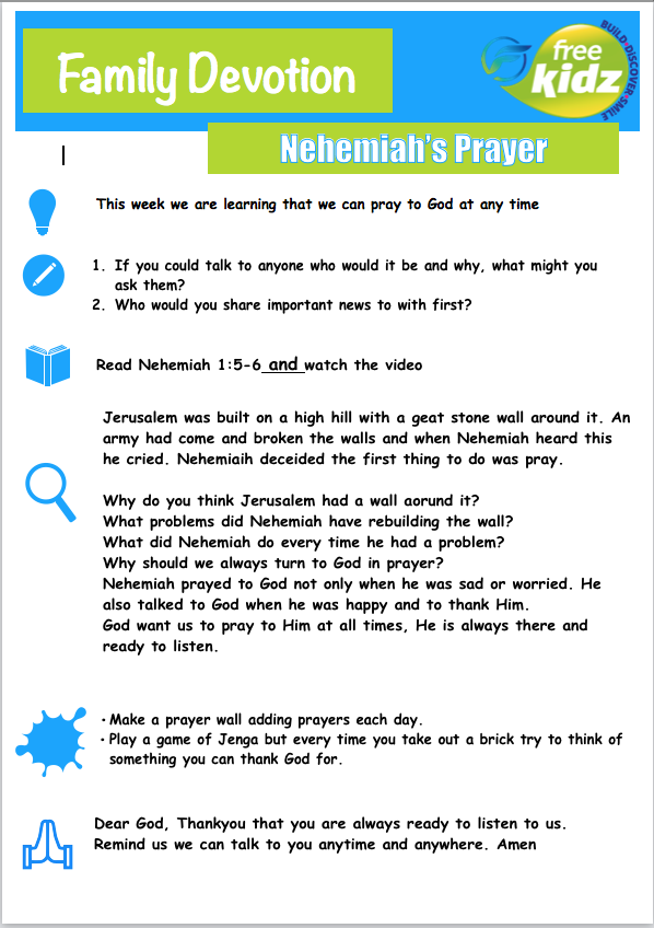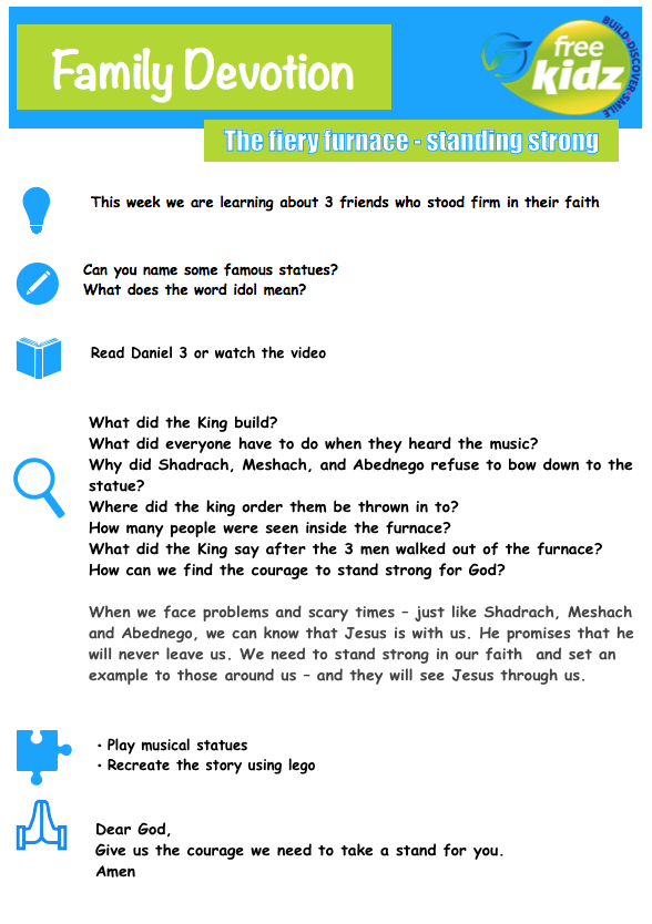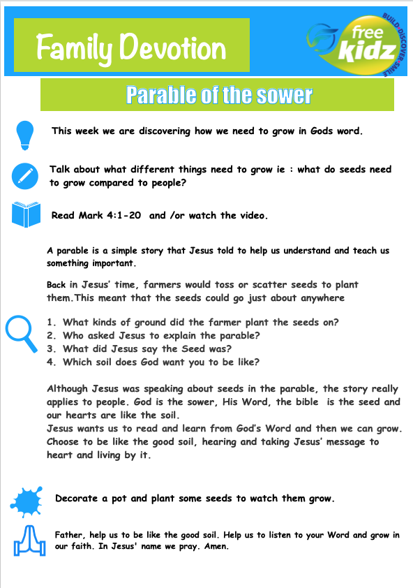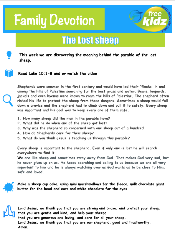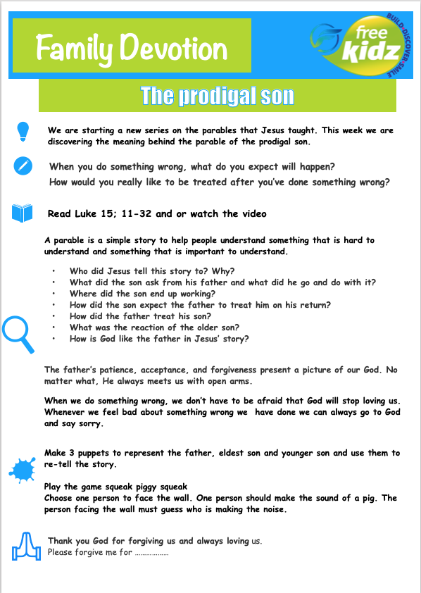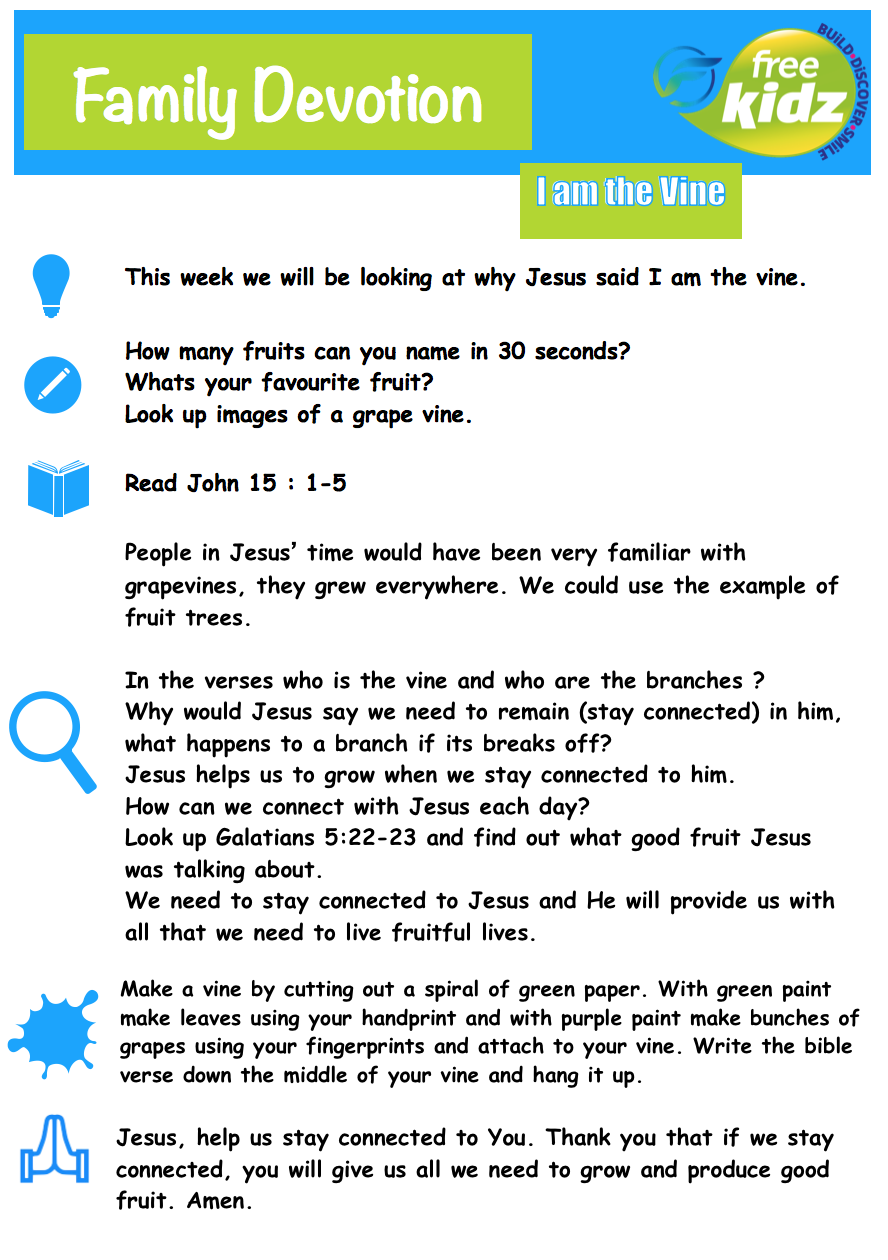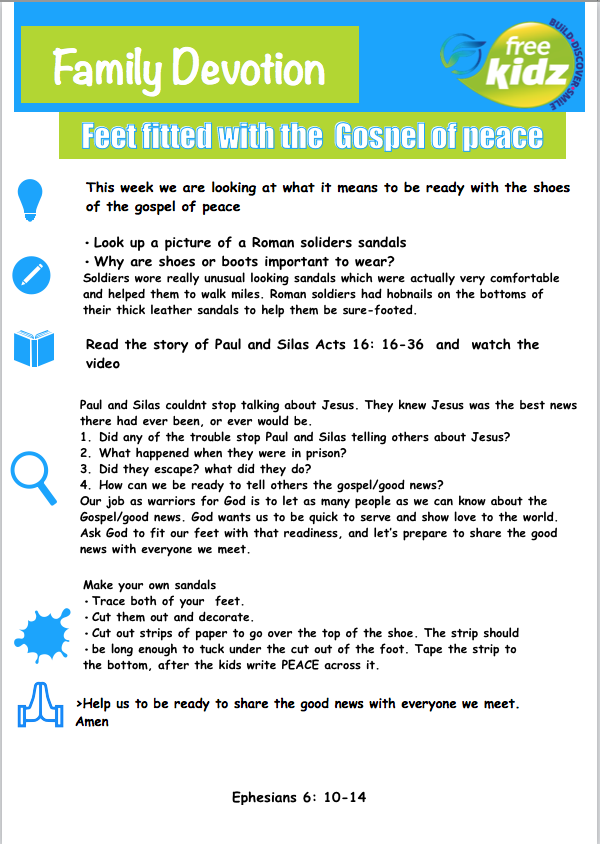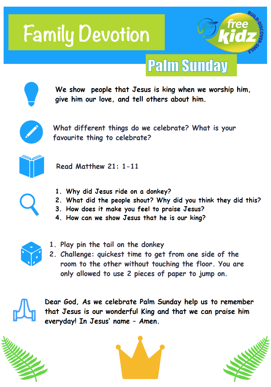 Due to the advice from the government regarding the Coronavirus all Freekidz activities are closed until further notice. However, we would still love to stay connected with you so below are some resources you can use with your family at home to view online or to download.